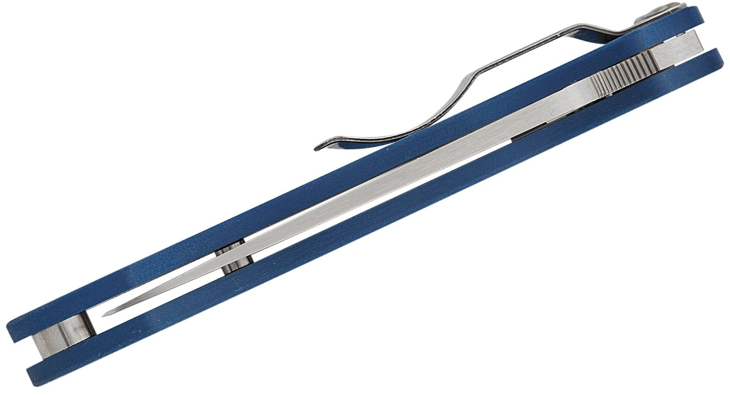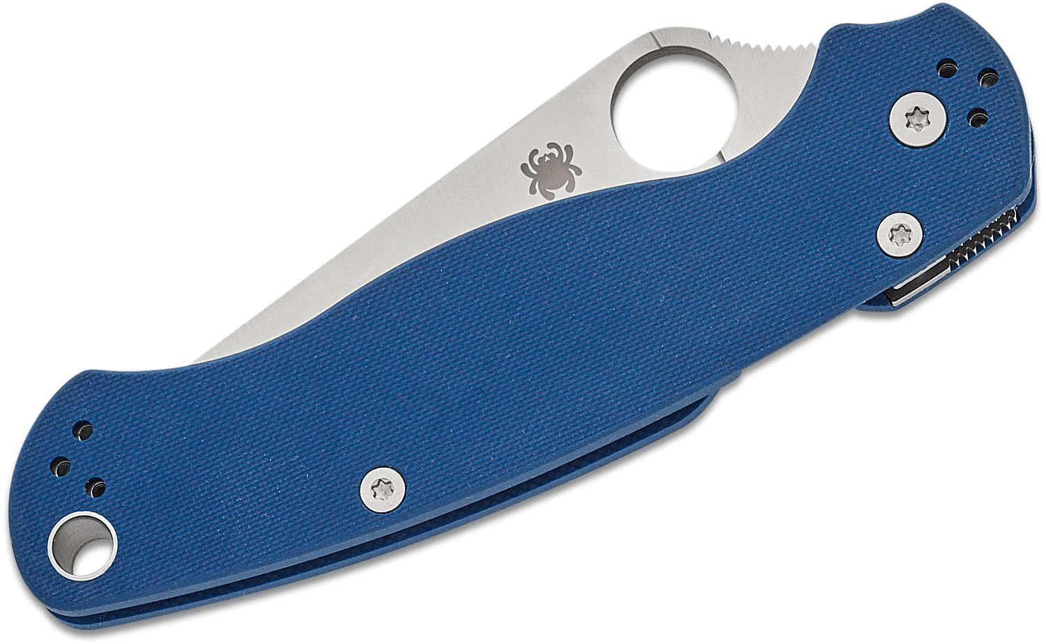 Deschiderea este intuitivă și rapidă prin SpyderHole, iar blocarea fiabilă este asigurată de Compression Lock, rezistent și ușor de operat cu o singură mână. Mânerul ergonomic din G10, în albastru cobalt, oferă siguranță în prindere chiar și în condiții solicitante.