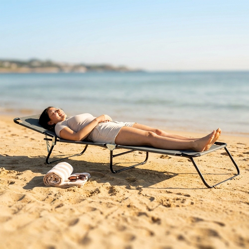 Reglare ușoară a spătarului în patru niveluri pentru citit, bronzat sau somn pe suprafață plană.
