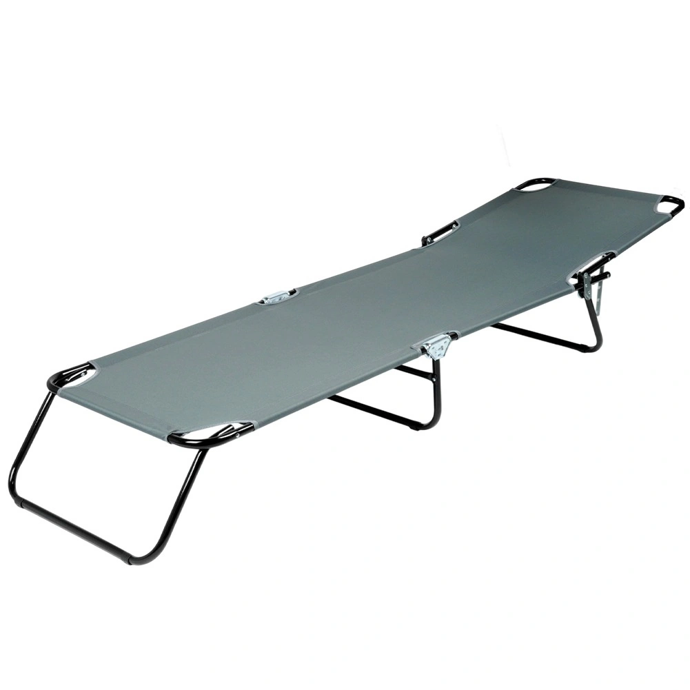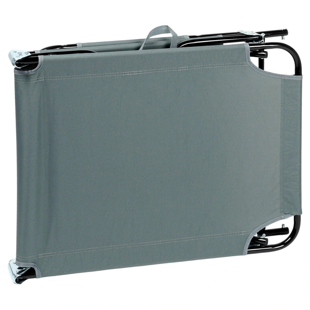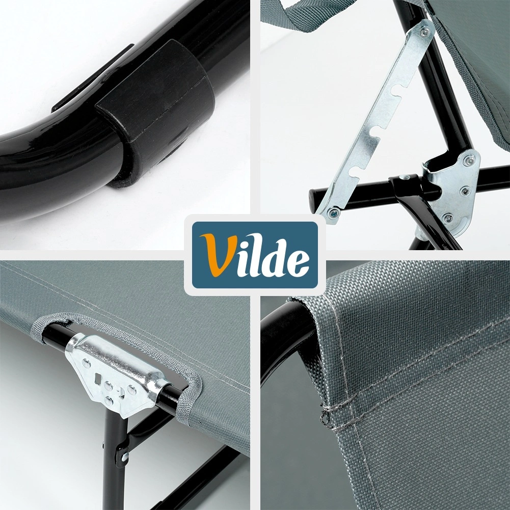 Cadrul metalic negru și husa din poliester gri asigură stabilitate și durabilitate îndelungată.