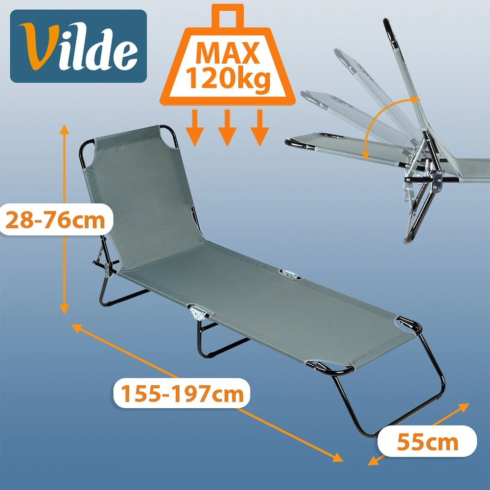 Bucură-te de relaxare oriunde cu șezlongul de grădină pliabil în elegantul gri. Oferă 4 poziții de reglare, inclusiv complet întins, o construcție metalică solidă și capacitate de încărcare de 120 kg. Datorită dimensiunilor compacte după pliere și mânere practice, este ideal pentru grădină, terasă, balcon, precum și pentru plajă sau camping.