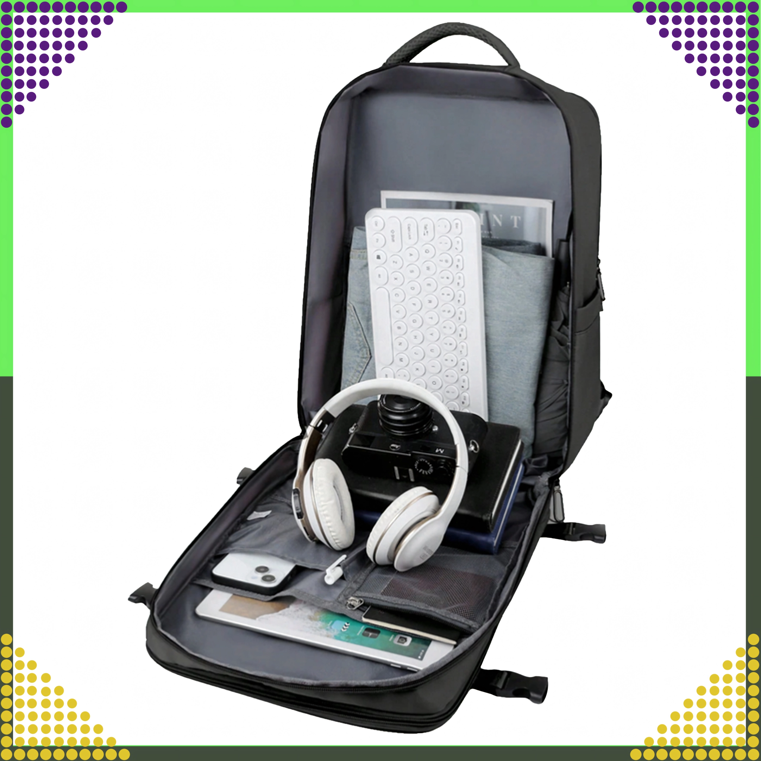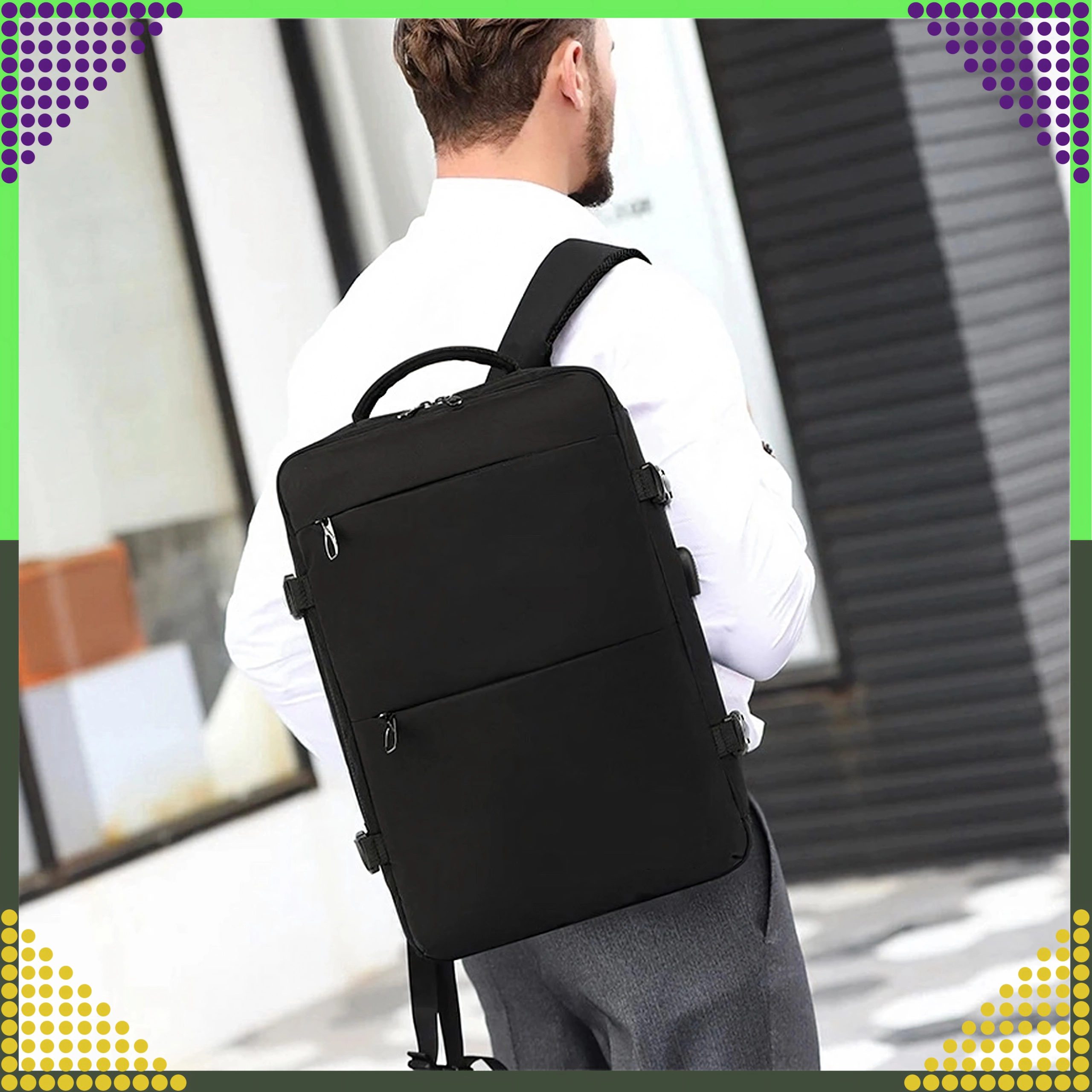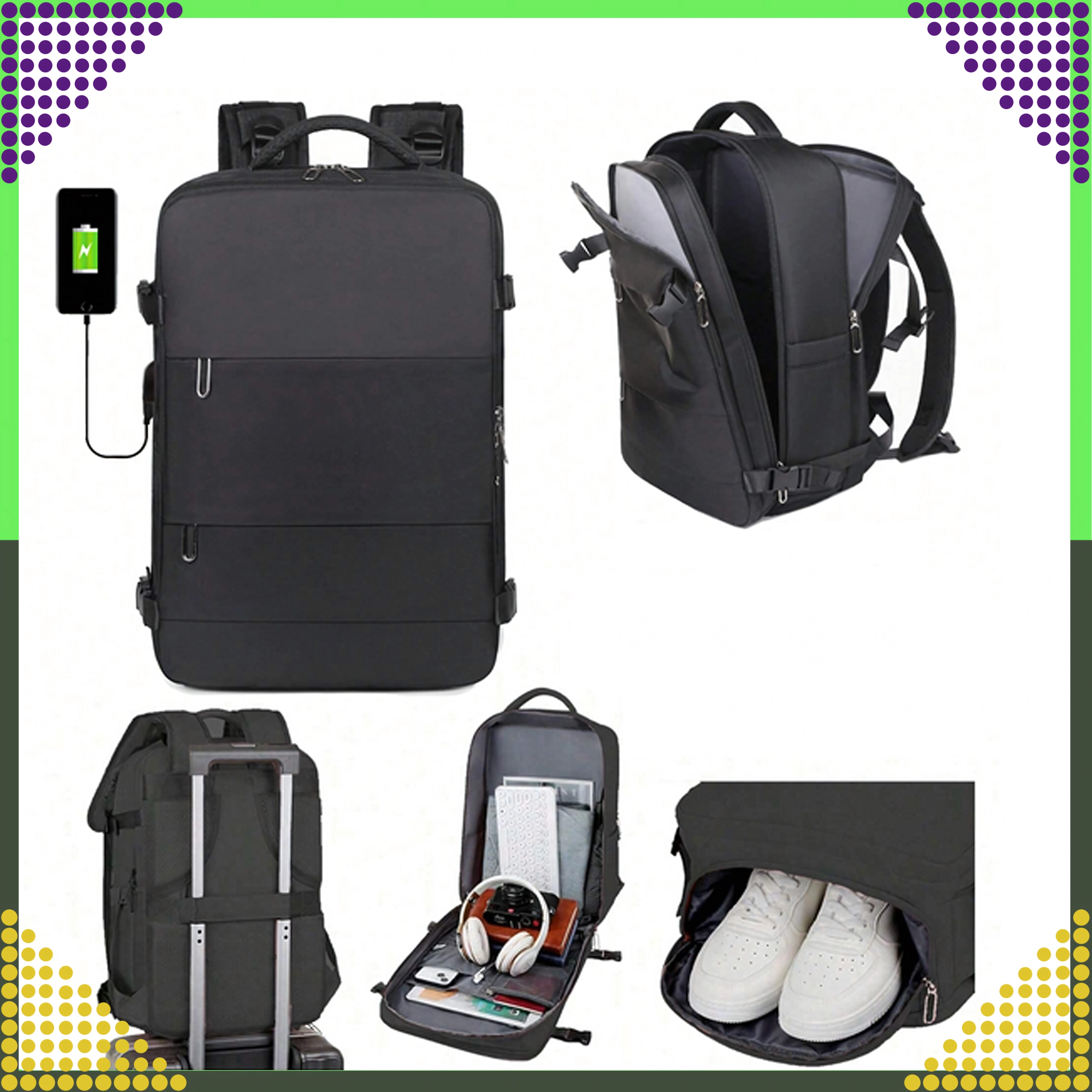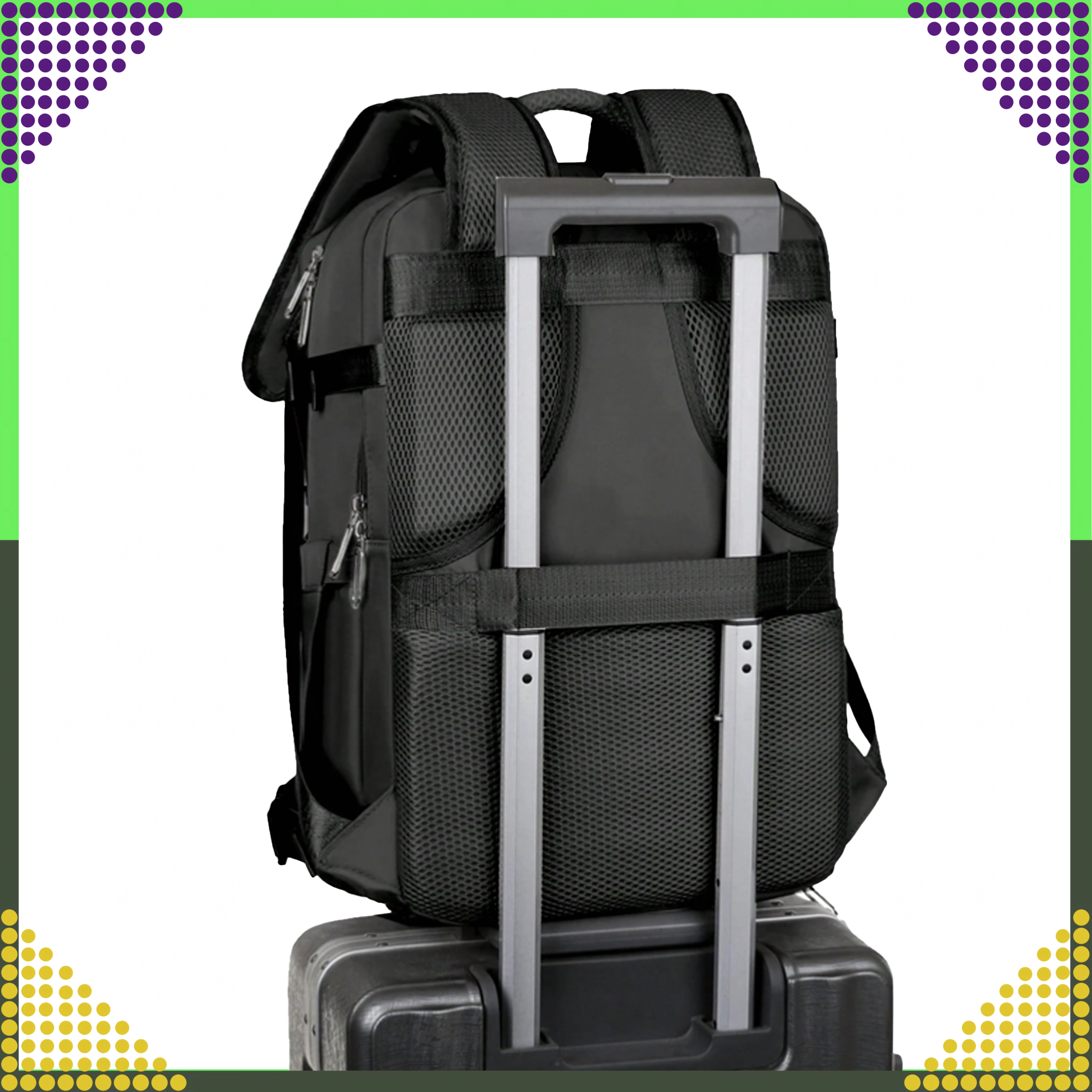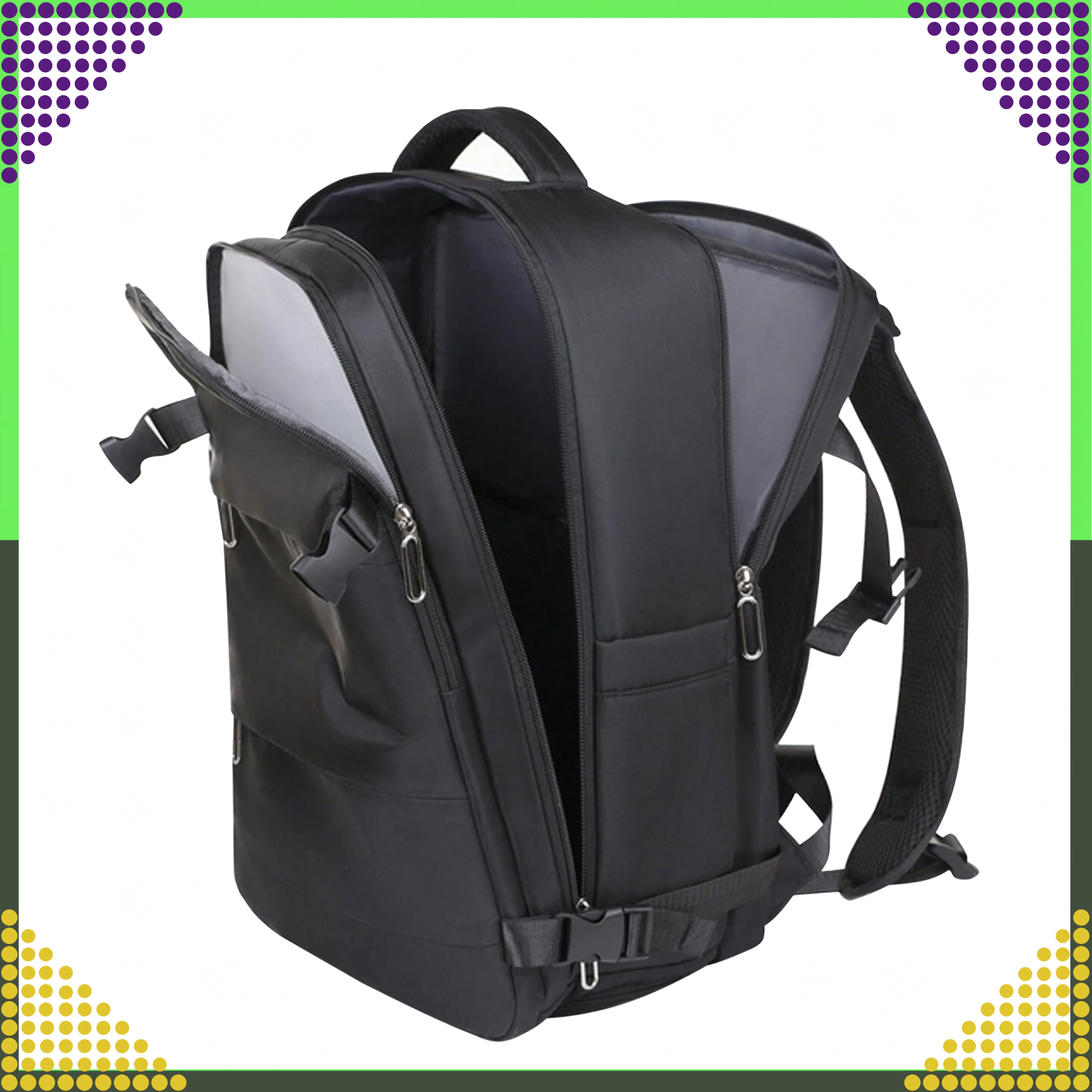 - Respectă dimensiunile pentru cabină: 46 × 30 × 20 cm (Ryanair, Wizz Air etc.)