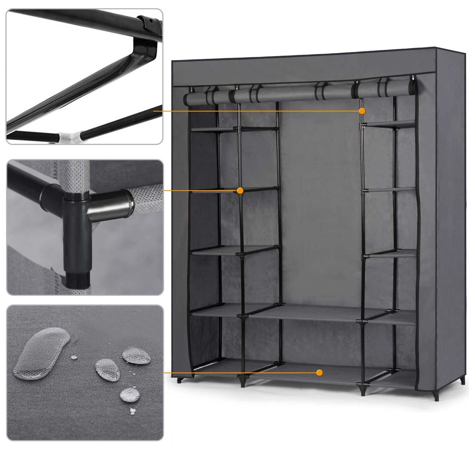 Dulapul textil Massido – grafit este o alegere excelentă dacă aveți nevoie să extindeți rapid și eficient spațiul de depozitare. Datorită combinației dintre scheletul din oțel și conectorii solizi din PP, construcția este stabilă și durabilă pe termen lung. Husa rezistentă la apă protejează hainele de praf și umiditate, iar compartimentarea ingenioasă în trei zone separate vă permite să sortați și să organizați cu ușurință totul, de la tricouri la paltoane.