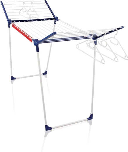 Bucurați-vă de uscare comodă fără compromisuri. LEIFHEIT Pegasus 200 Solid este un uscător de rufe spațios, ușor de pliat, cu aripi laterale, care oferă până la 20 m de suprafață de uscare – ideal pentru spălatul în familie. Datorită aripilor rabatabile, puteți agăța cu ușurință și articole vestimentare lungi, precum pantaloni sau rochii, fără să atingă solul.