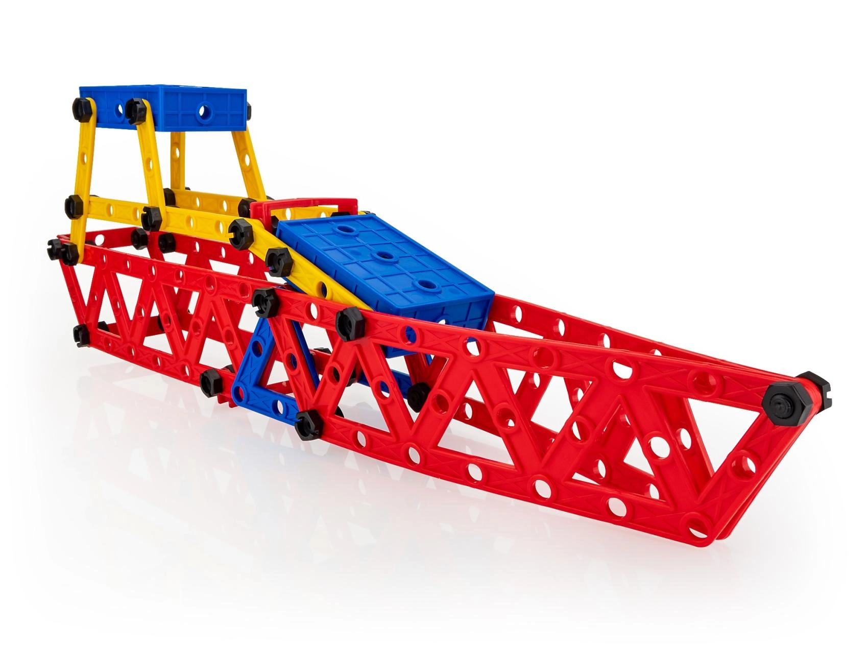 Panourile perforate mari, lonjeroanele și conectorii permit asamblarea unei game variate de modele, de la avion până la barcă – imaginația nu are limite.