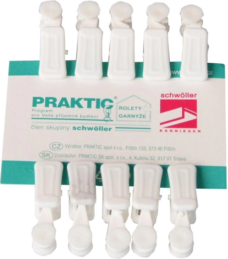 Culoarea albă universală se potrivește cu majoritatea galerilor și interioarelor, în timp ce plasticul rezistent asigură o durată de viață îndelungată în utilizarea zilnică. Pachetul de 10 buc. este ideal pentru ferestre mici sau pentru completarea setului existent.