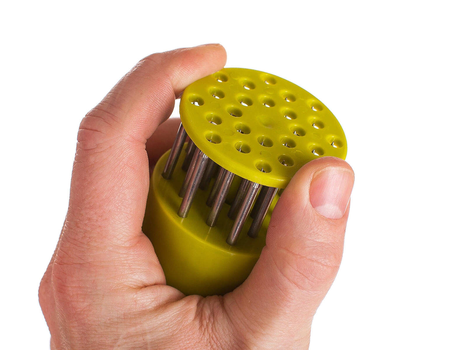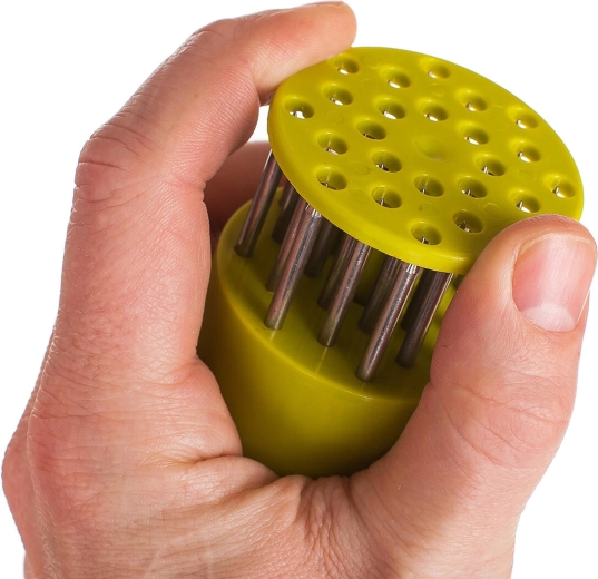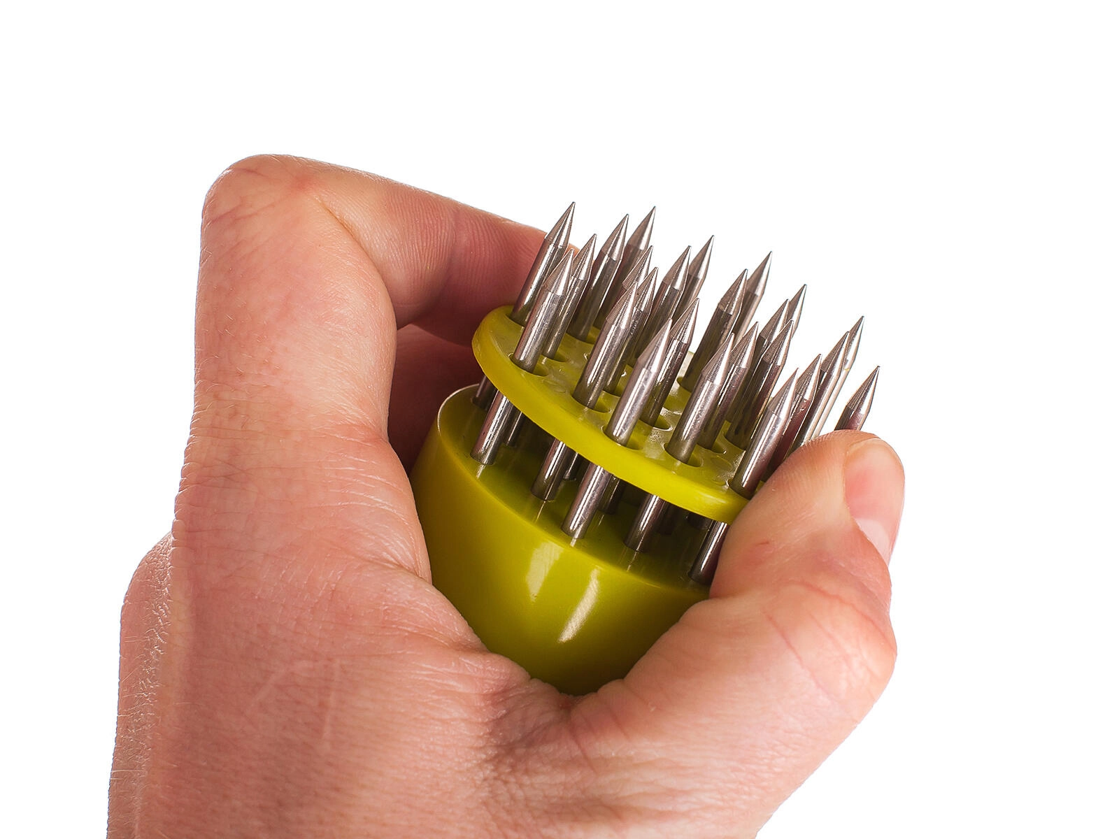 Frăgezitorul de carne Culinaria este ajutorul ideal atât pentru gătitul de zi cu zi, cât și pentru prepararea mâncărurilor festive. Câmpul dens de ace din oțel inoxidabil aerisește și taie fibrele musculare, garantând o rumenire mai uniformă și o absorbție semnificativ îmbunătățită a condimentelor și a marinadelor. Va fi apreciat de oricine dorește ca friptura să fie mereu moale și suculentă.