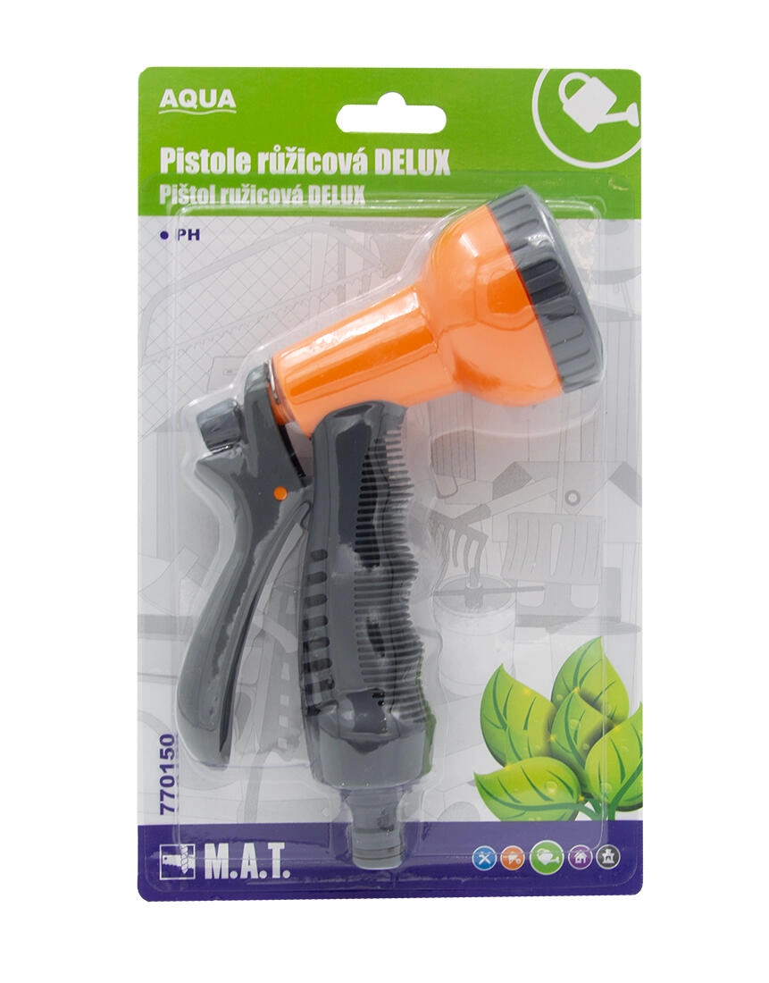 Pistolul de stropit DELUX cu cap tip trandafir facilitează udarea delicată a straturilor, ghivecelor și plantelor sensibile. Datorită mânerului ergonomic și trăgaciului cu pârghie, aveți control deplin asupra debitului și direcției apei, fără a suprasolicita mâna.