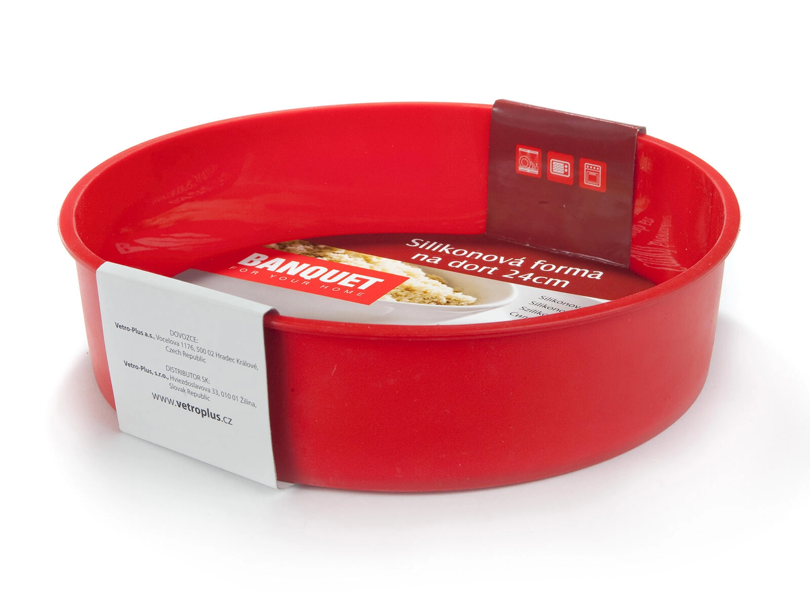 Practică formă de silicon pentru tort cu diametrul de 24 cm, în eleganta culoare roșie din gama CULINARIA, pentru coacere ușoară fără lipire. Rezistă la temperaturi de până la 230 °C, este potrivită pentru cuptor electric și cu microunde și poate fi spălată în mașina de spălat vase. Nu reține mirosuri sau arome, iar datorită materialului flexibil deserturile se scot ușor din formă.