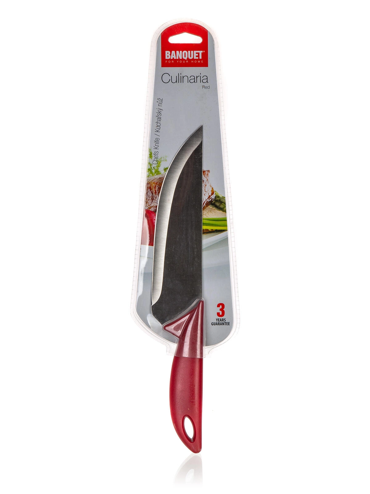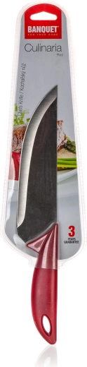 Cuțitul de bucătar din gama CULINARIA RED este un ajutor de încredere pentru prepararea cărnii, legumelor și a ierburilor aromatice. Lama din oțel asigură tăieturi curate și o ascuțime de durată, în timp ce mânerul ușor din plastic se potrivește plăcut în mână și ușurează controlul la tăiere.