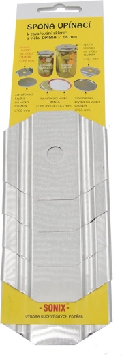 Datorită construcției din aluminiu, ușoare și durabile, clemele sunt ușor de utilizat, rezistente la coroziune și potrivite pentru utilizare repetată. Accesoriul ideal al capacului de sterilizare pentru conservarea în casă a gemurilor, compoturilor sau legumelor.