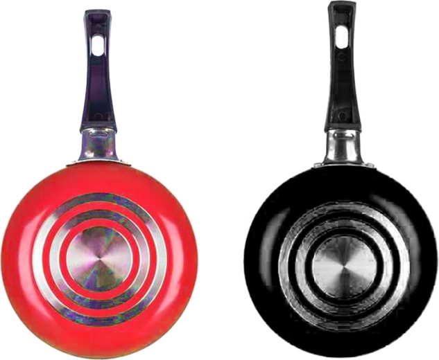 Partea exterioară are un mix atractiv de culori (albastru, mov, galben), astfel încât tigaia se potrivește stilat în orice bucătărie. Mânerul din bachelită este rezistent la căldură și confortabil de ținut, în timp ce fundul cu spirală ajută la încălzirea uniformă pe gaz, electric și vitroceramică. Inducția nu este compatibilă.