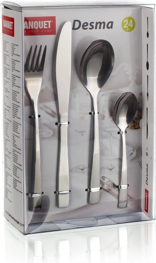Elegantul set de tacâmuri DESMA cu 24 de piese pentru mesele de zi cu zi și pentru ocazii festive. Oțel inoxidabil de calitate, cu finisaj luciu înalt, asigură durabilitate și întreținere ușoară. În set găsiți tot ce este necesar pentru șase persoane: linguri, furculițe, cuțite și lingurițe de ceai, cu o grosime a materialului atent echilibrată pentru o utilizare confortabilă.