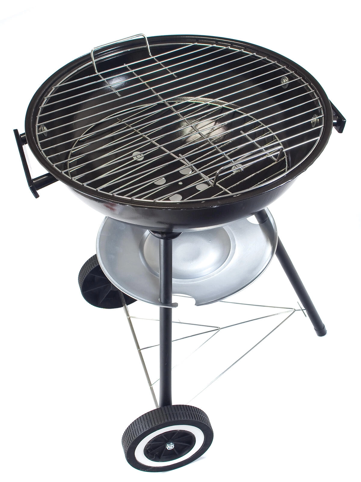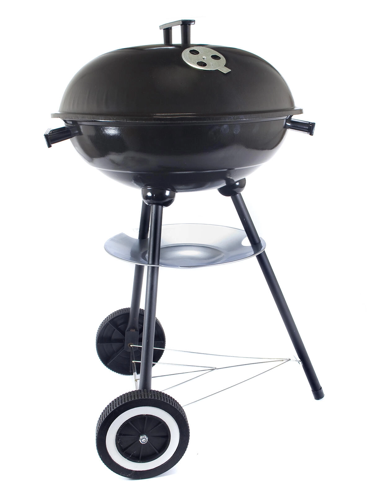 Trei picioare și două roți de transport asigură poziționare sigură și mutare comodă a grătarului prin grădină sau pe terasă.