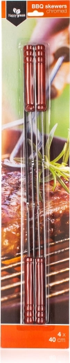 Ace metalice practice pentru grătar, cu lungimea de 40 cm și mâner din lemn confortabil pentru manevrare ușoară. Pachetul conține 4 bucăți, ideale pentru pregătirea frigăruilor din carne și legume pe grătar, în tigaie sau la cuptor. Construcția rezistentă cu suprafață cromată asigură durabilitate îndelungată și întreținere facilă.
