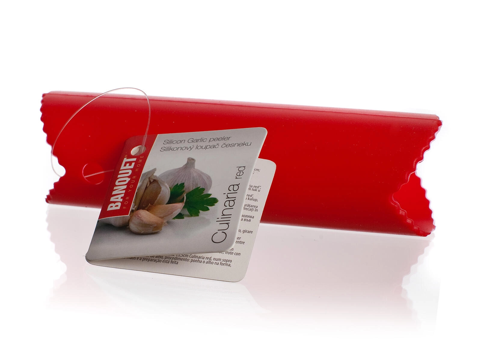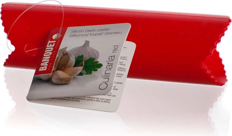 Decojitor practic de usturoi din silicon CULINARIA roșu, cu lungimea de 13,5 cm și diametrul de 3,5 cm, vă ajută să decojiți usturoiul în câteva secunde. Este suficientă o rulare ușoară și cățeii sunt pregătiți pentru utilizare ulterioară – rapid, curat și fără miros pe degete.