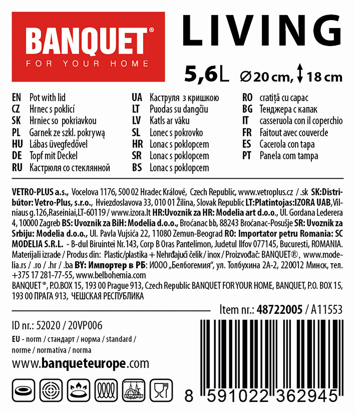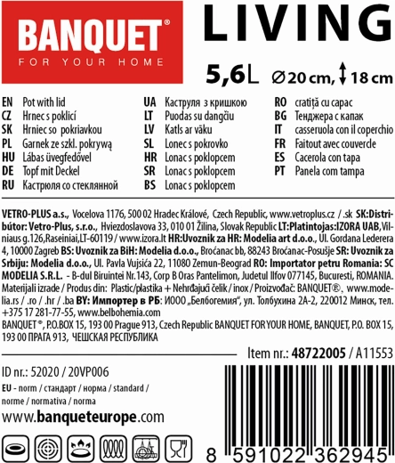 Oala practică și elegantă din inox LIVING, cu volum de 5,6 l și diametru de 20 cm, este ideală pentru gătitul de zi cu zi. Oferă execuție durabilă din inox, capac din sticlă cu buton din inox, suprafață lucioasă cu dungi mate și utilizare universală pe toate tipurile de plite, inclusiv inducție.