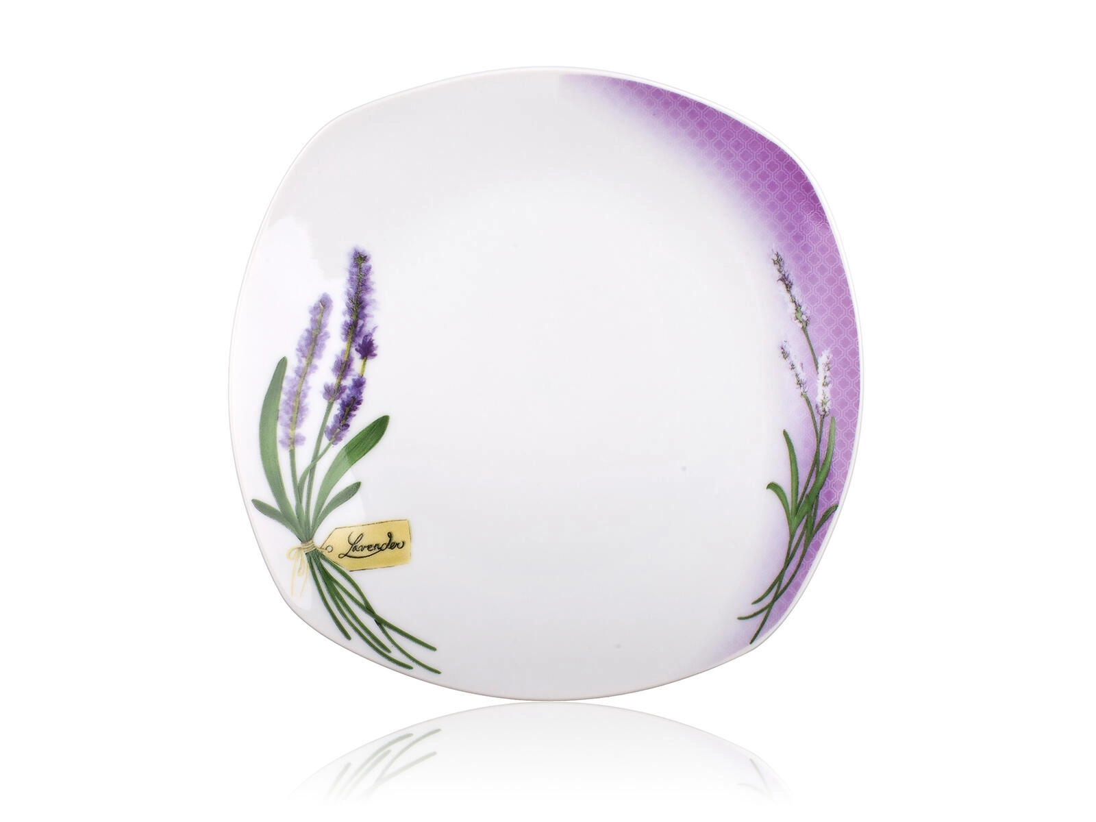 Liniile curate, cu colțuri rotunjite, și motivul delicat de lavandă oferă mesei un aspect proaspăt și elegant, potrivindu-se de minune cu stiluri diverse de aranjare.