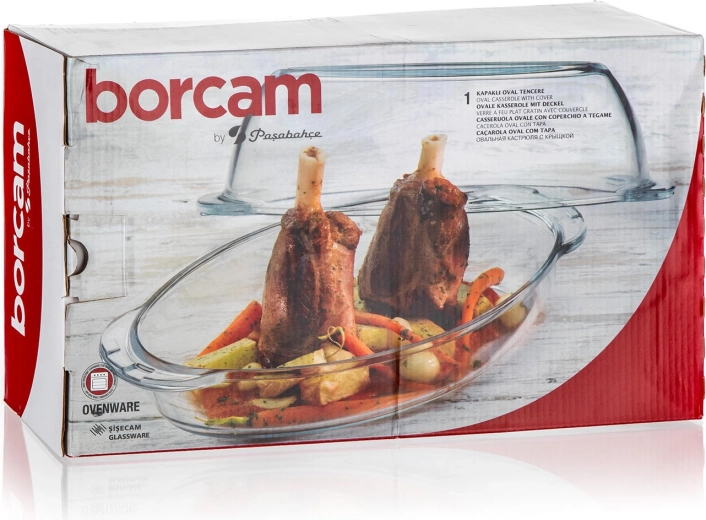 Tava ovală din sticlă cu capac oferă un volum generos de 4,6 l (vas 2,8 l + capac 1,8 l), astfel încât puteți pregăti fără efort prânzul pentru familie sau delicatesele de weekend. Sticla borosilicată termorezistentă se remarcă prin rezistență mecanică și la temperatură ridicată, este neutră la gust și miros și distribuie excelent căldura pentru o coacere uniformă.