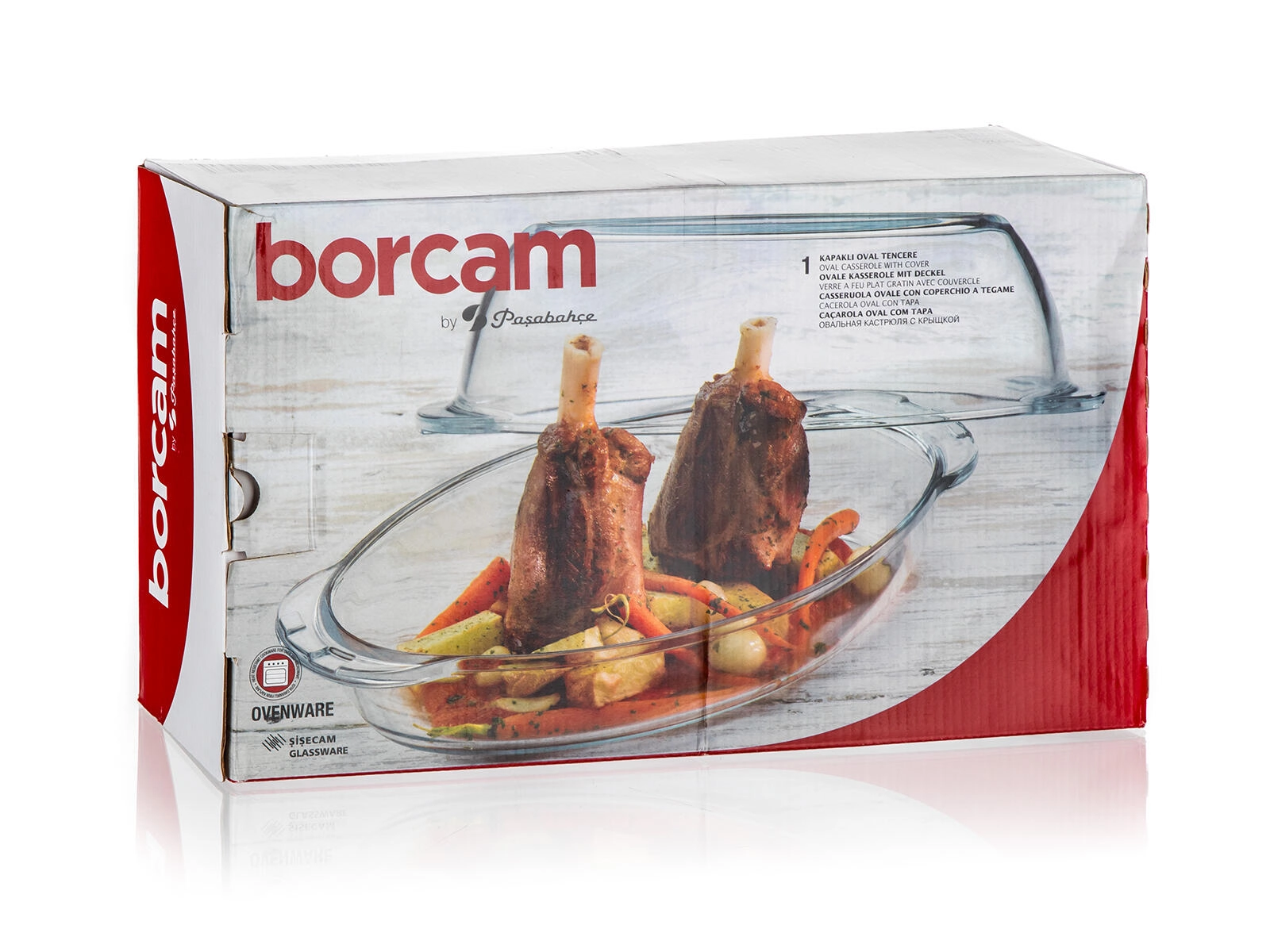 Tavă ovală universală din sticlă cu capac, cu un volum total de 4,6 l, ideală pentru coacerea cărnii, a preparatelor gratinate și a deserturilor. Este fabricată din sticlă borosilicată, care este foarte rezistentă la temperaturi de la -50 la 500 °C, igienică și ușor de întreținut – se poate spăla în mașina de spălat vase. Datorită capacului obțineți un vas suplimentar și posibilitatea coacerii sănătoase fără grăsimi inutile.