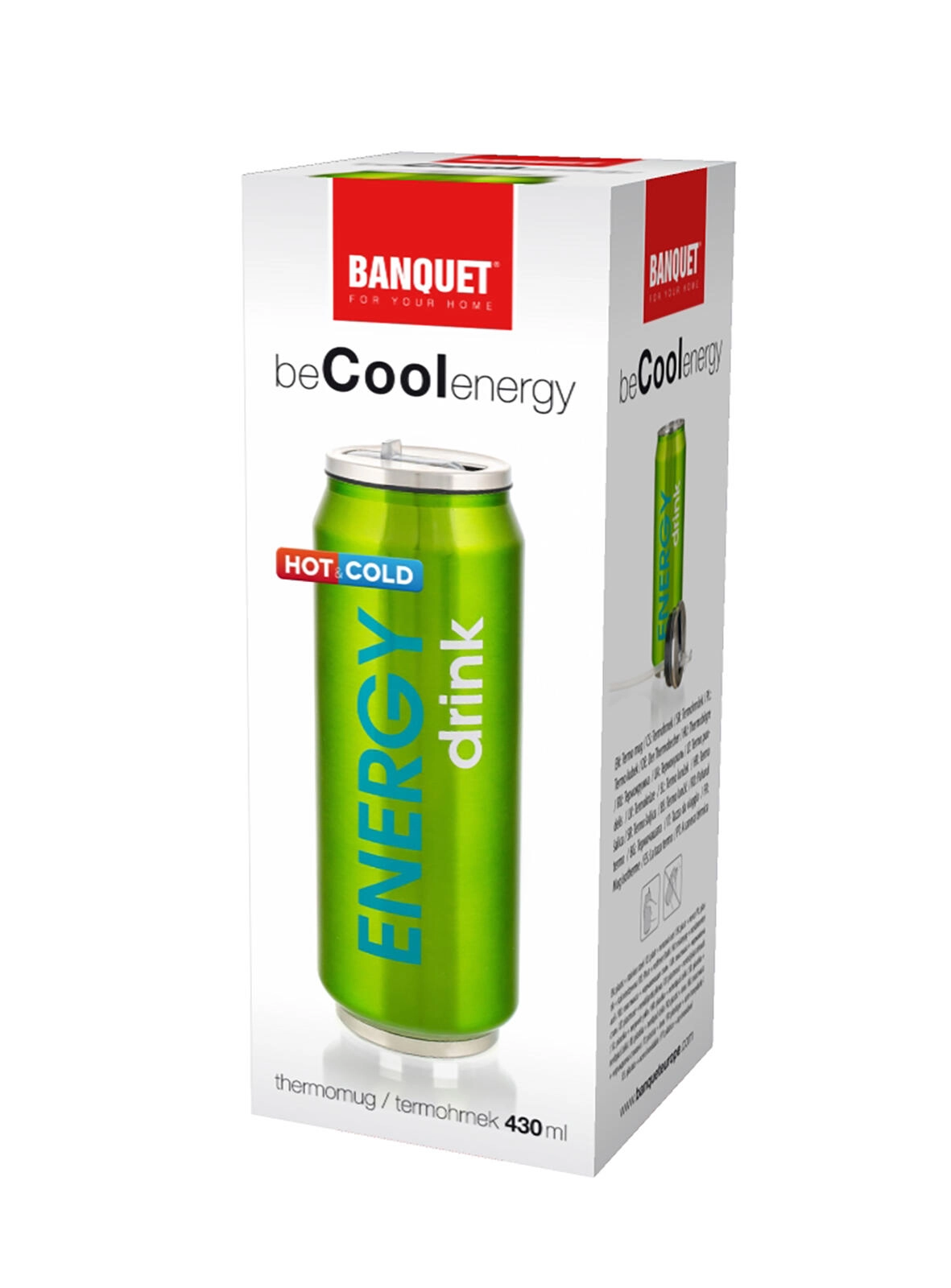 Cană termică BE COOL ENERGY cu volum de 430 ml îmbină designul modern de doză cu o izolație termică fiabilă. Corpul din inox cu pereți dubli protejează temperatura băuturii și este rezistent la șocuri și uzură zilnică. Finisajul verde are un aspect proaspăt și completează perfect stilul tău de viață activ.