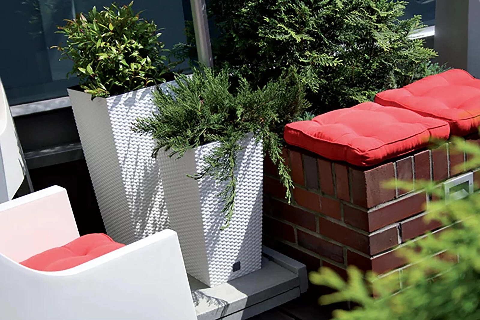 Materialul ușor și rezistent ușurează manipularea, menținând în același timp stabilitatea ghiveciului. Cele două volume separate (vas interior și înveliș exterior) asigură plantare comodă și întreținere facilă.