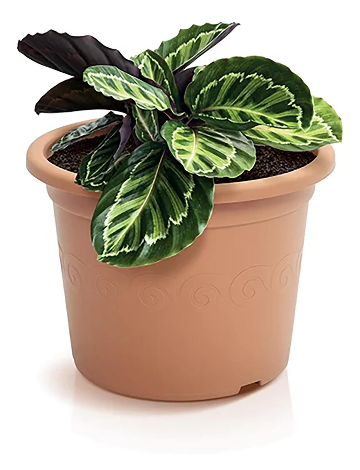 Acest ghiveci din plastic, stilat și într-o nuanță plăcută de teracotă, este o alegere ideală pentru plante de interior și exterior. Datorită construcției ușoare și rezistente, se transportă ușor și face față factorilor meteo obișnuiți.