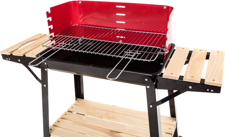 Echiparea practică, inclusiv paravântul, îmbunătățește tirajul și stabilitatea căldurii. Cele două măsuțe laterale oferă suficient spațiu pentru ustensile și ingrediente, iar raftul inferior din lemn este ideal pentru depozitarea cărbunelui sau a accesoriilor de servire. Datorită construcției bine gândite, grătarul este potrivit pentru balcon, terasă și grădină.