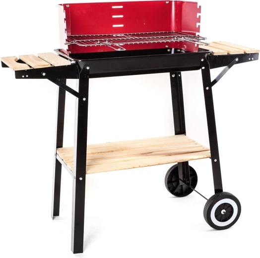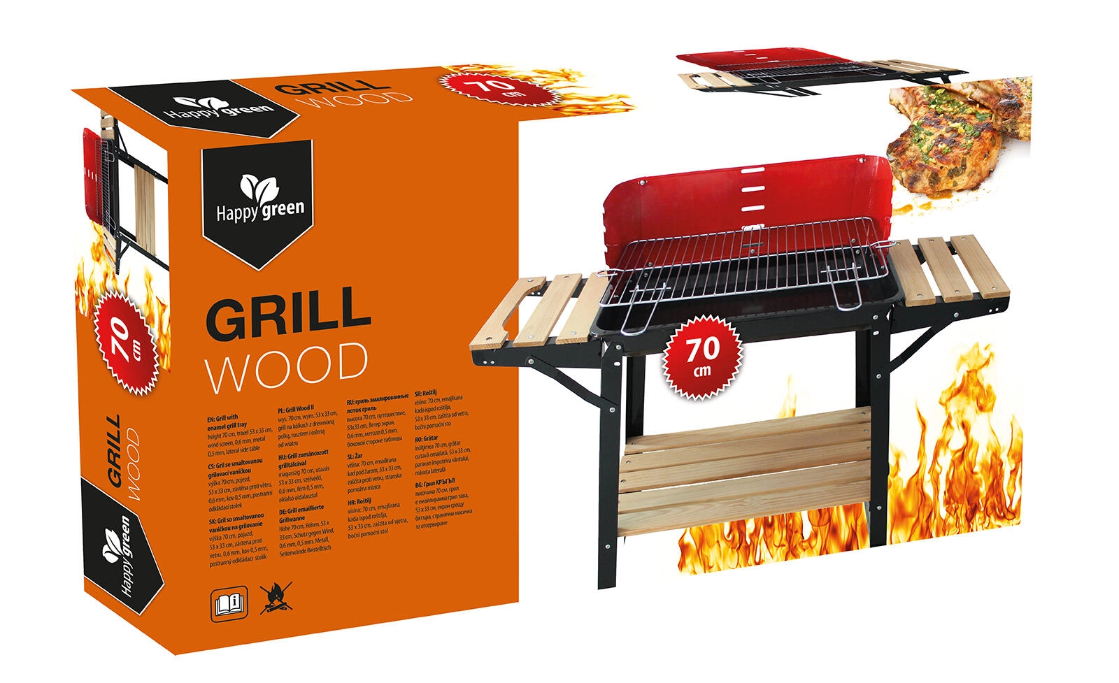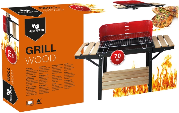Practicul grătar de grădină pe cărbune WOOD, cu dimensiunea grătarului de 53 × 33 cm, oferă o construcție stabilă, o cadă emailată pentru durabilitate sporită și un grătar cromat pentru gătire uniformă. Datorită paravântului, celor două măsuțe laterale și raftului inferior din lamele de lemn, este ideal pentru grătar confortabil pe terasă sau în grădină.