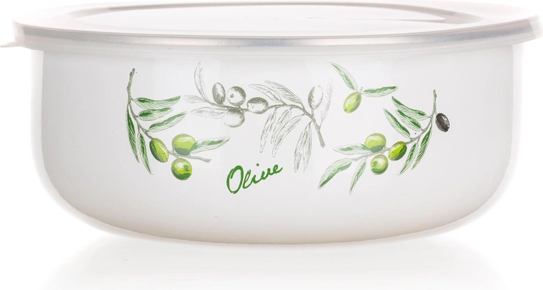 Setul de boluri OLIVES îmbină farmecul atemporal al smalțului cu capace transparente practice. Patru dimensiuni, de la 0,2 la 1,3 litri, acoperă gustările, garniturile și resturile de mâncare. Suprafața albă elegantă cu decor de măsline se potrivește în orice bucătărie și transformă bolurile și în vase frumoase pentru servire.