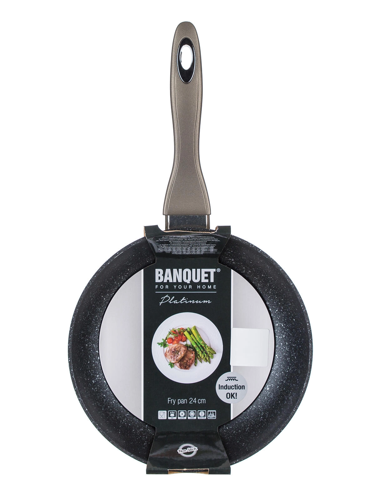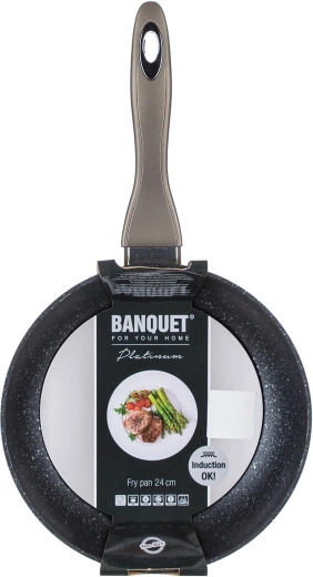 Tigaia BANQUET Metallic Platinum (24 cm) este realizată din aluminiu turnat, forjat, care se remarcă prin conductivitate termică ridicată și rezistență la impact și deformare. Suprafața antiaderentă, dură și rezistentă la zgârieturi permite gătitul cu minimum de grăsime și asigură eliberarea ușoară a alimentelor. Acoperirea exterioară carbon-metalic oferă un aspect modern și o durabilitate ridicată.