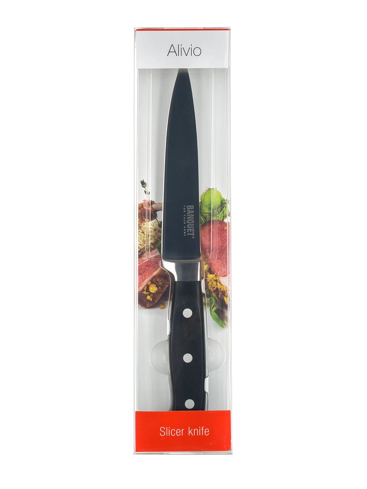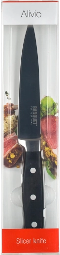 Cuțitul practic pentru feliat ALIVIO, cu lungimea totală de 28,5 cm și lamă de 15 cm, este ideal pentru feliere precisă a cărnii, brânzeturilor și legumelor. Construcția durabilă din oțel inoxidabil asigură durată de viață îndelungată, tăietură ascuțită și curată și un uz cotidian confortabil în orice bucătărie.