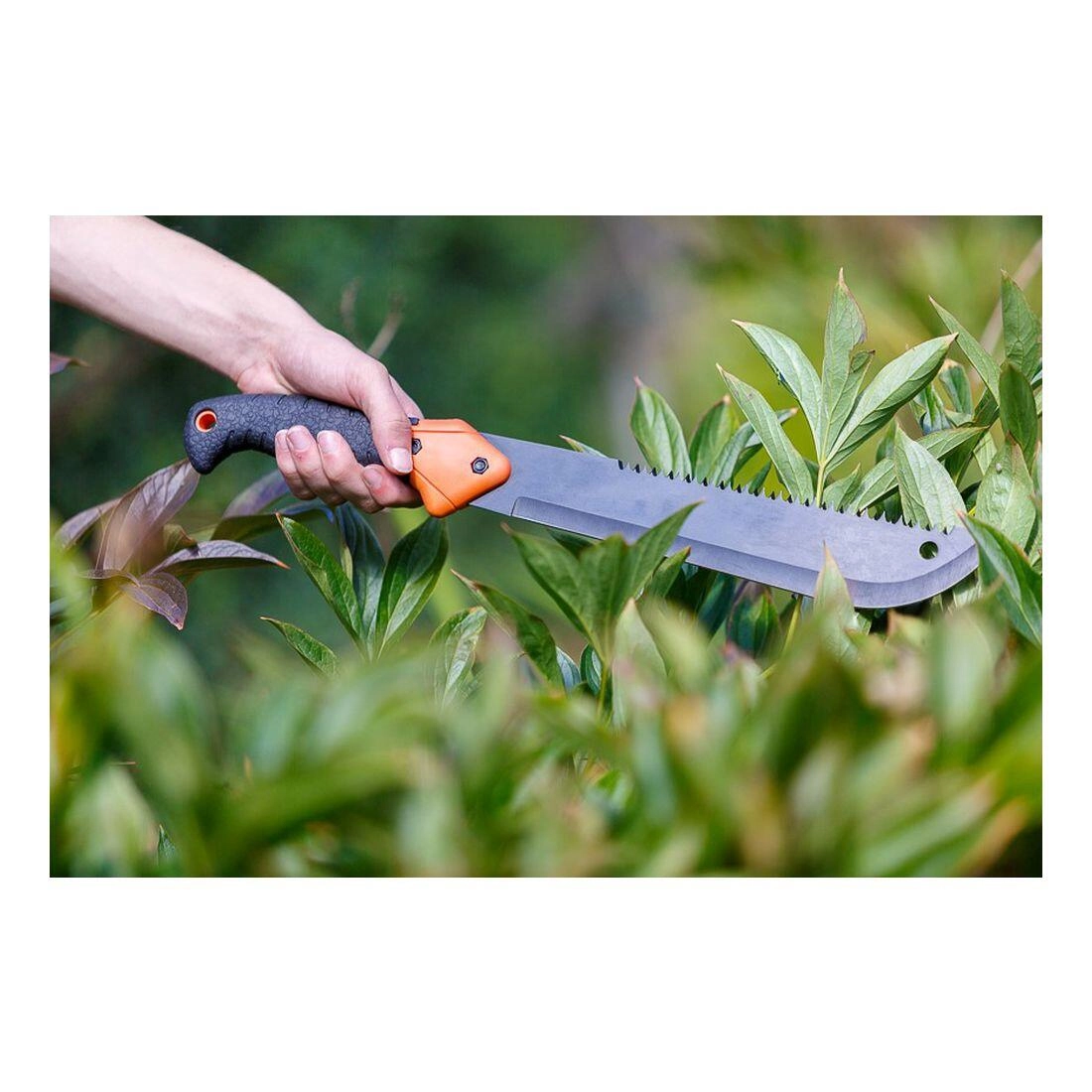 Secționați crengi groase cu muchia ascuțită și tăiați lemn mai dur cu fierăstrăul cu dinți de pe spatele lamei – lucru mai rapid fără schimbarea uneltei.