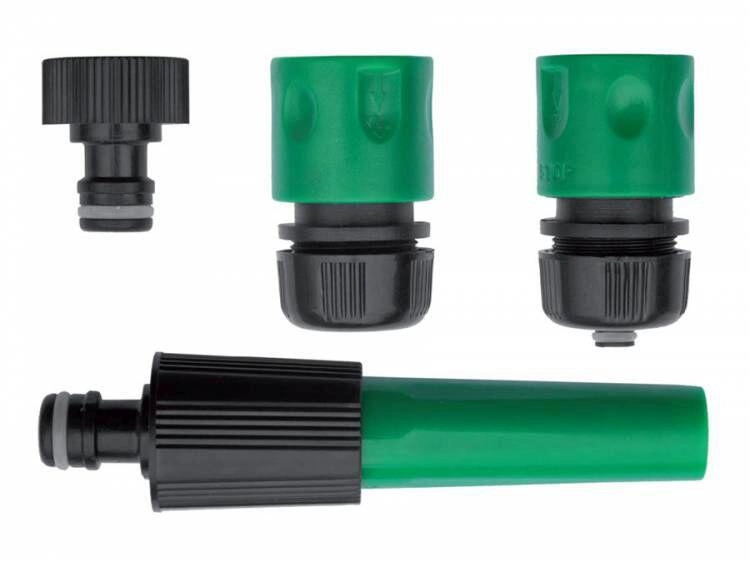 Pachetul include o duză clasică reglabilă pentru pulverizare fină sau jet mai puternic, cuplă rapidă cu stop și cuplă rapidă standard pentru conectarea rapidă a furtunului, precum și adaptor pentru robinetul de apă. Datorită cuplelor rapide compatibile, veți conecta setul în câteva clipe, fără unelte.