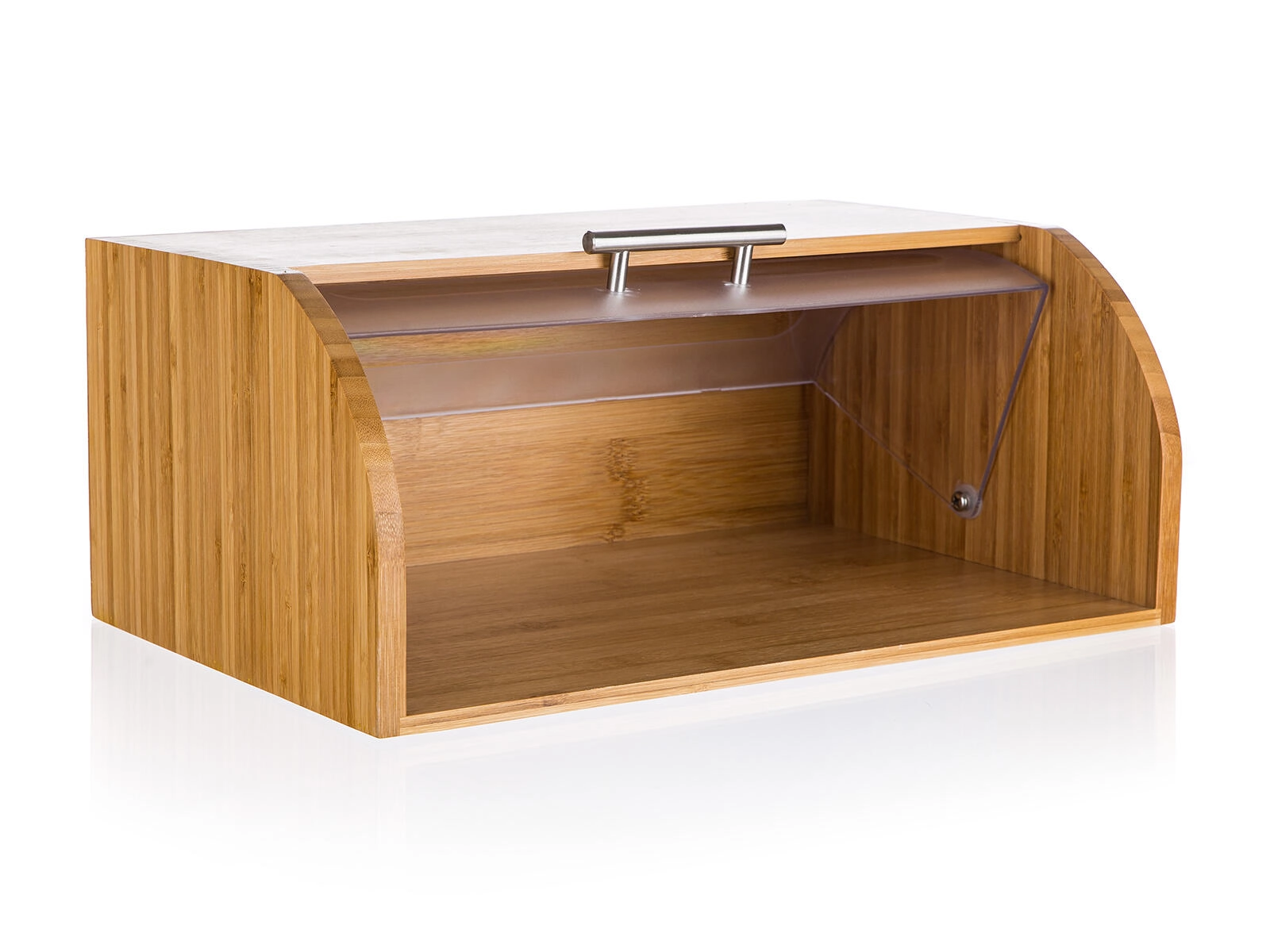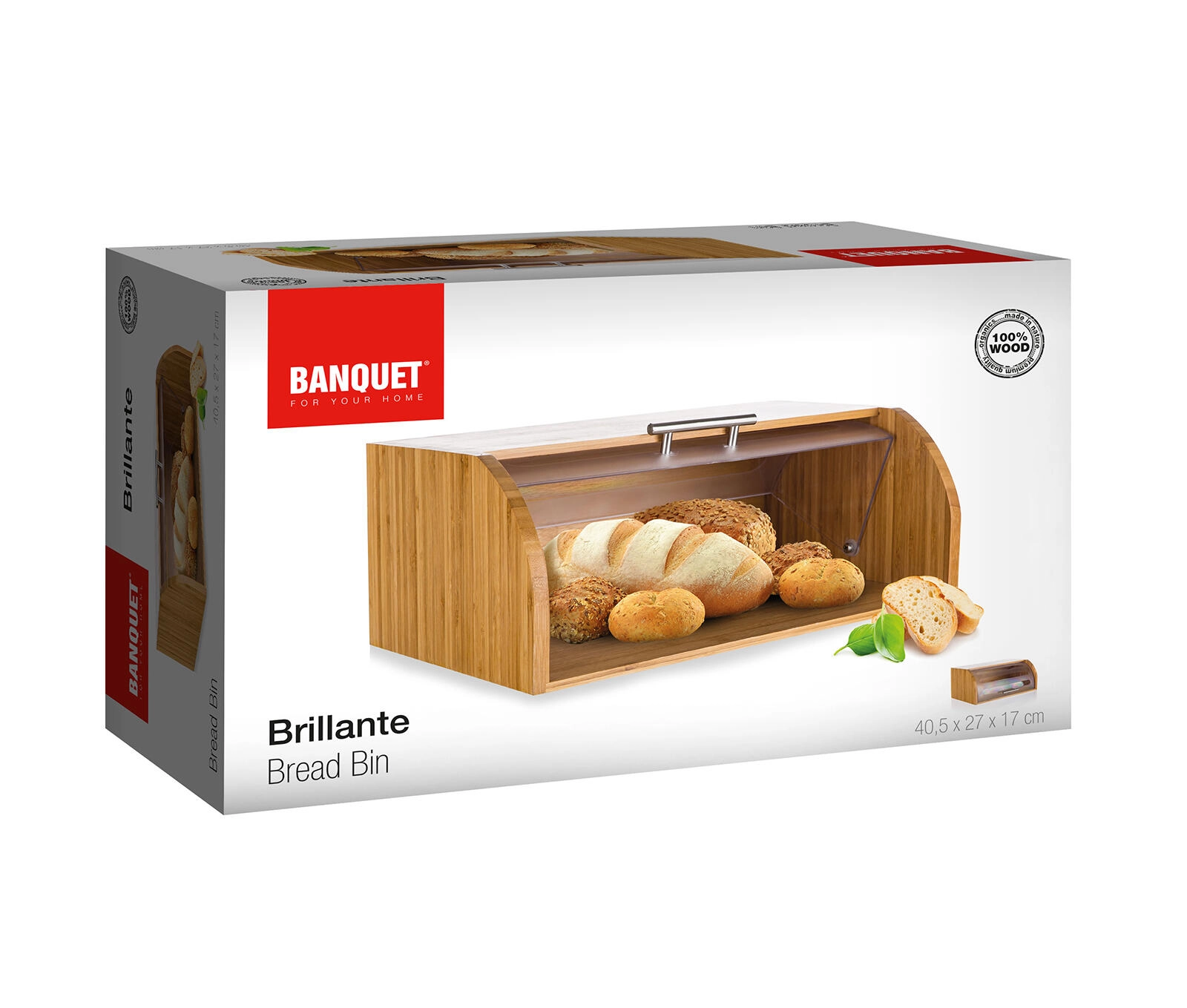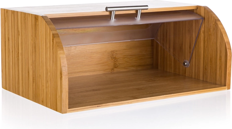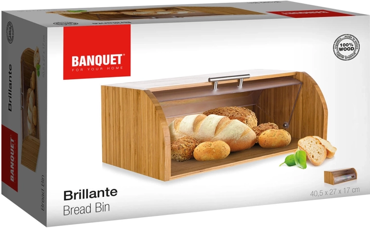 Cutia de pâine elegantă BRILLANTE din lemn de bambus rezistent, cu capac din plastic transparent, păstrează produsele de panificație proaspete mai mult timp și organizate clar. Datorită dimensiunilor de 40,5 × 27 × 17 cm oferă spațiu suficient pentru pâine și alte produse de panificație și se potrivește elegant în orice bucătărie.