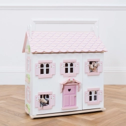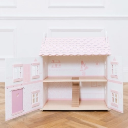 Casă luxoasă cu trei etaje, în nuanțe romantice roz-alb, impresionează prin acoperișul strălucitor cu margini ondulate, inimioare și decorațiuni interioare colorate în fiecare cameră. Ferestrele și obloanele funcționale îi invită pe copii în lumea poveștilor, în timp ce structura robustă din lemn asigură o durată de viață îndelungată. Căsuța este livrată fără mobilier, astfel încât copiii o pot personaliza cu piese de mobilier și figurine după propriul stil.