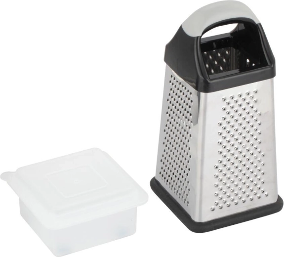 Descoperiți ajutorul universal pentru bucătărie: răzătoare dreptunghiulară din oțel inoxidabil de calitate, cu mâner ergonomic din plastic. Datorită recipientului inclus, colectați cu ușurință legumele, brânza sau ciocolata răzuită și mențineți blatul de lucru curat.