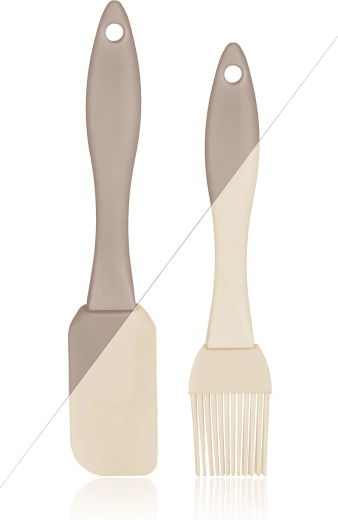 Descoperiți setul universal CULINARIA, care nu trebuie să lipsească din nicio bucătărie modernă. Spatula din silicon este excelentă pentru amestecare, întindere și răzuirea resturilor de aluat din boluri, în timp ce pensula distribuie uniform untul, uleiul sau marinada. Ambele ustensile au un mâner plăcut din plastic pentru o prindere sigură și o manevrare ușoară.
