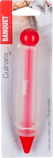 Practicul creion de decorare CULINARIA Red, cu lungimea de 14 cm, este un ajutor excelent pentru decorare și umplere precise a preparatelor dulci și sărate. Datorită combinației de silicon și PP, se ține confortabil în mână și permite tușe fine și curate cu cremă sau glazură. Ideal pentru decorarea prăjiturilor cu bezea, cremă de unt sau cremă de brânză. Nu este potrivit pentru mașina de spălat vase.