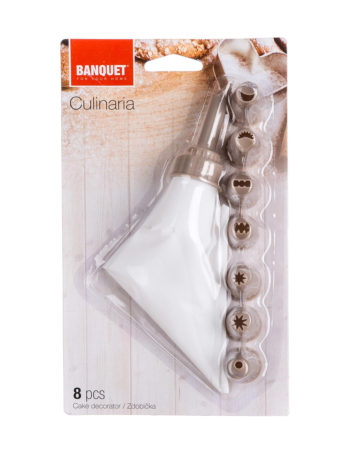Punga de ornat CULINARIA, practică, cu 8 duze interschimbabile, este un ajutor excelent pentru decorarea torturilor, brioșelor și deserturilor. Construcția din plastic rezistent și formele variate ale duzelor permit decorare precisă și creativă a creațiilor tale de cofetărie.