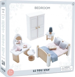 Le Toy Van aduce un set pentru dormitor care aduce eleganță și confort în fiecare căsuță de păpuși. Lumea jucăușă și visătoare a fanteziei copilăriei devine realitate cu acest set.