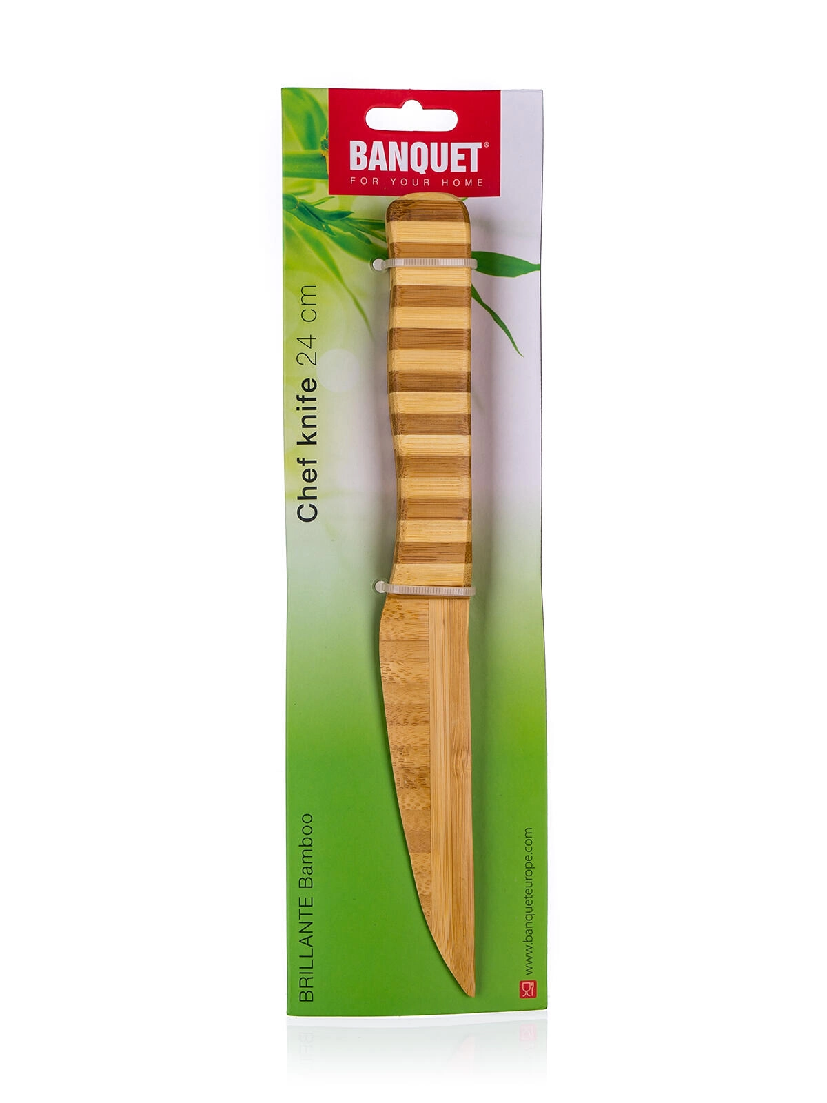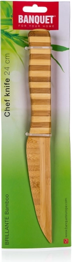 Cuțit de bucătar universal cu lungimea de 24 cm pentru utilizare zilnică. Datorită execuției din bambus oferă tăiere ecologică, sigură și sănătoasă. Muchia blândă ajută la păstrarea gustului și calității alimentelor și nu deteriorează tocătorul, limitând astfel apariția bacteriilor.