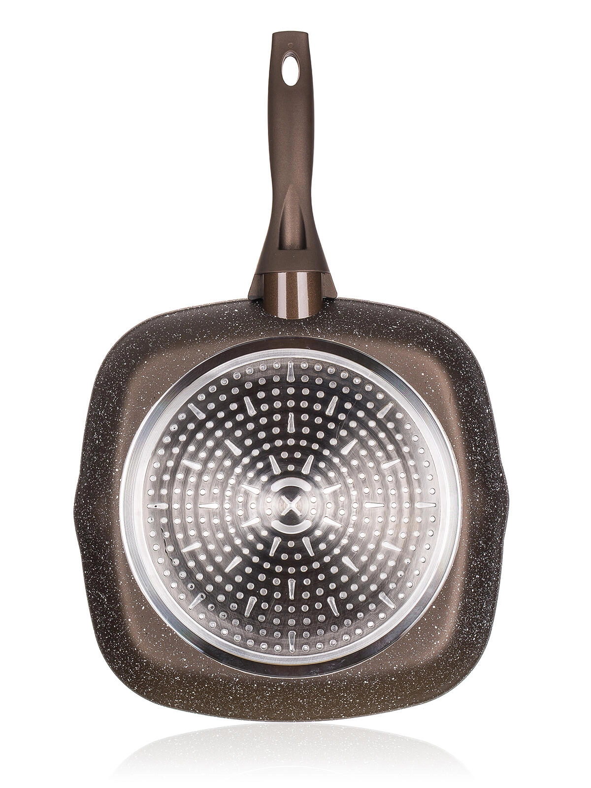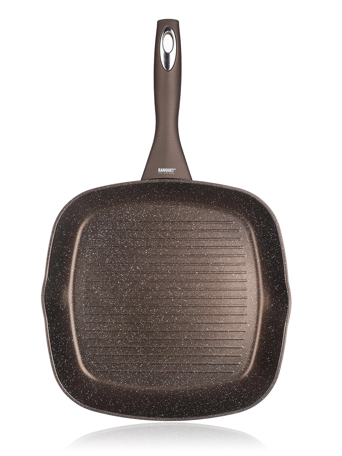 Această tigaie grill robustă, cu aspect de piatră în culoarea Dark Brown, este proiectată pentru rezultate perfecte de gătit la grătar în bucătărie. Datorită suprafeței antiaderente Dyflon, pregătiți carne, pește și legume cu minimum de ulei și fără lipire. Canalele înalte ajută la evacuarea surplusului de grăsime și creează dungi atrăgătoare de grill.