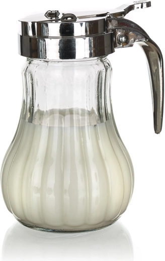 Datorită garniturii din silicon, conținutul este protejat împotriva scurgerilor nedorite și își păstrează prospețimea. Combinația stilată de sticlă și inox se potrivește atât în bucătării moderne, cât și tradiționale – perfect pentru miere, frișcă, lapte și sirop de arțar.