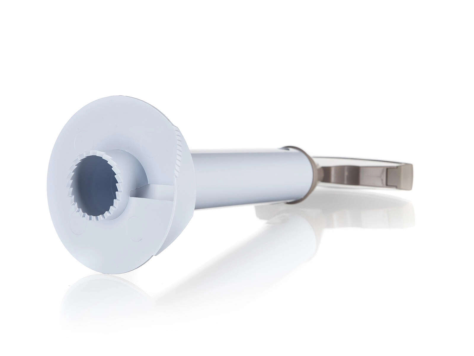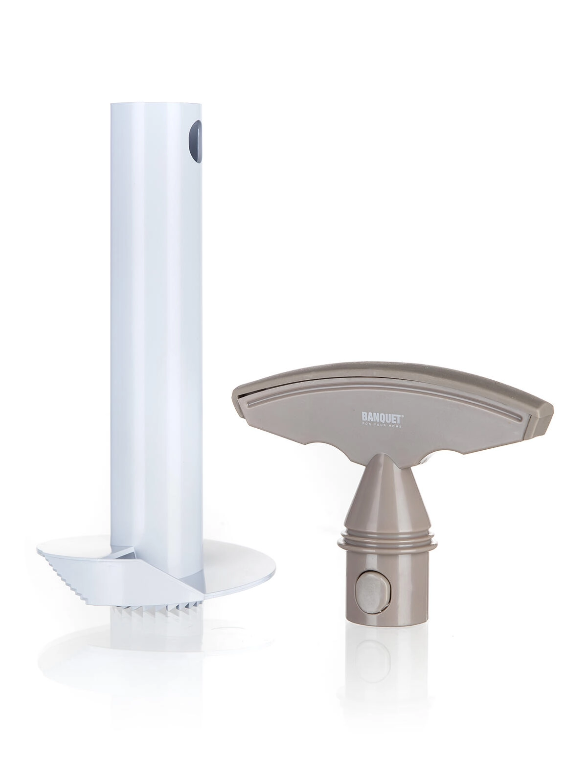 Datorită mânerului ergonomic în T și marginii zimțate ascuțite, lucrul este lin și sigur. Construcția din plastic rezistent se întreține ușor și, după utilizare, o poți introduce pur și simplu în mașina de spălat vase.