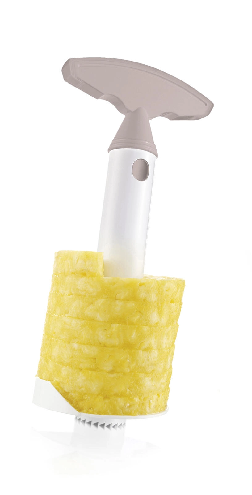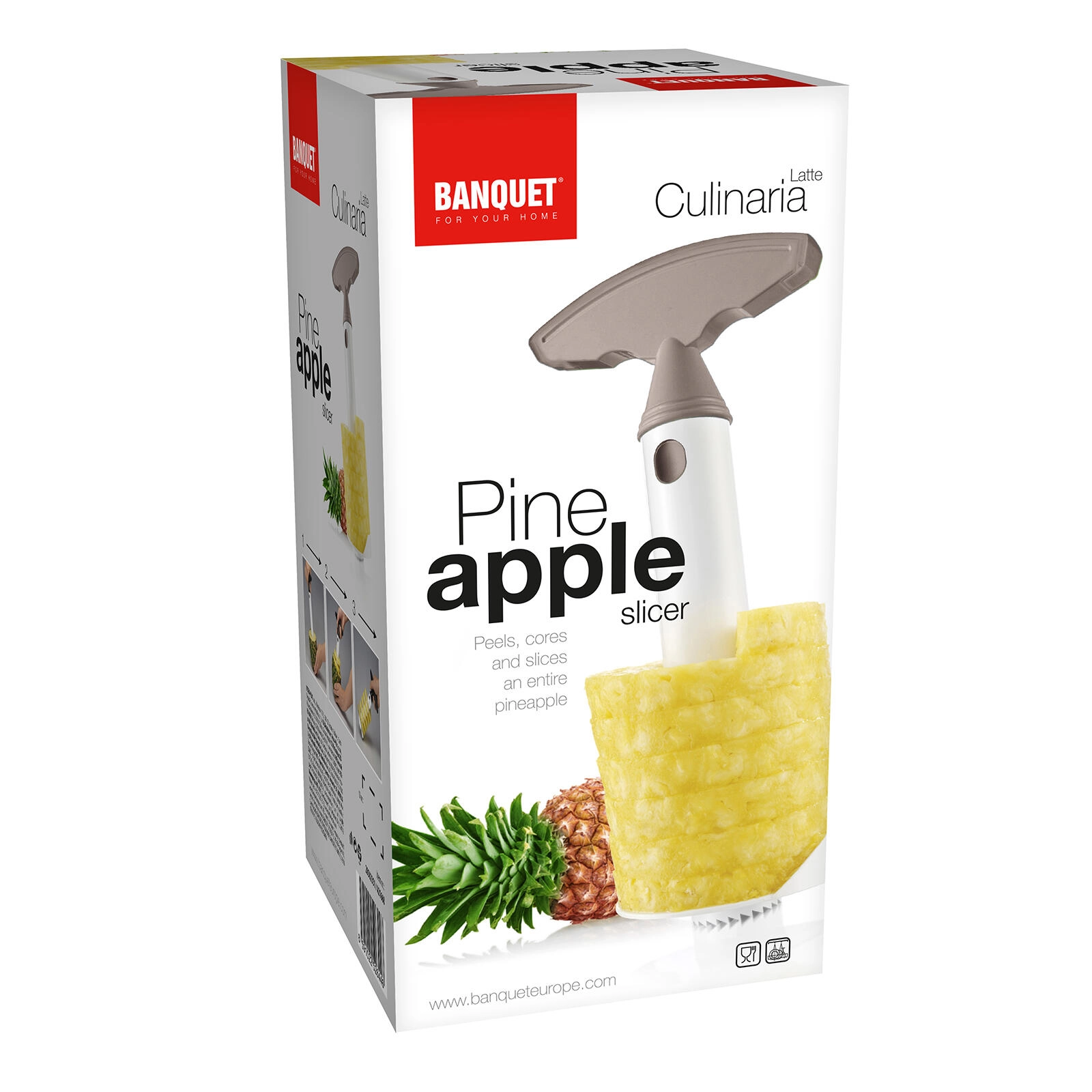 Descoperă o modalitate rapidă și curată de a te bucura de ananas proaspăt fără efort. Feliatorul și decupatorul Culinaria Latte pătrunde ușor prin pulpă, îndepărtează miezul tare și, în doar câteva rotiri, creează felii spiralate estetice, ideale pentru deserturi, mic dejun și cocktailuri.