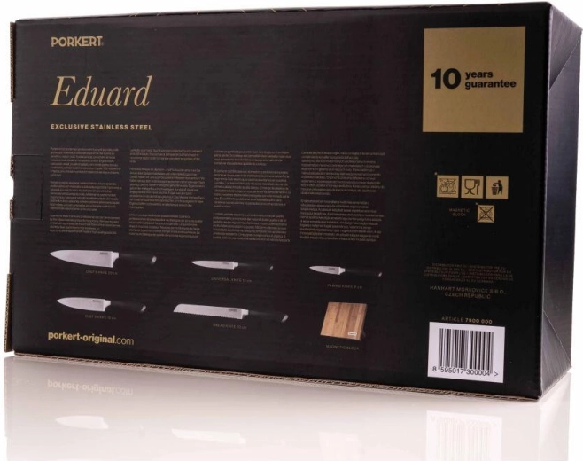 Setul universal de cuțite EDUARD este conceput pentru a acoperi toate sarcinile obișnuite din bucătărie – de la felierea pâinii crocante până la tranșarea fină a cărnii. Lamele din oțel X50CrMoV15 (ISO 1.4116) cu duritate HRC 55 ±2 își păstrează tăișul, se întrețin ușor și oferă o tăiere lină, fără sfâșiere.