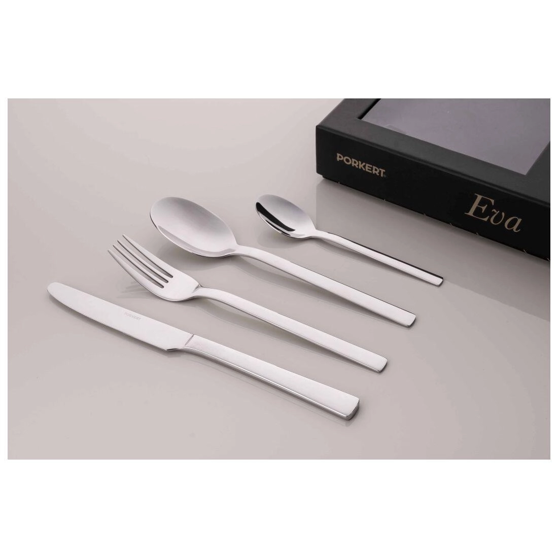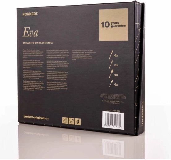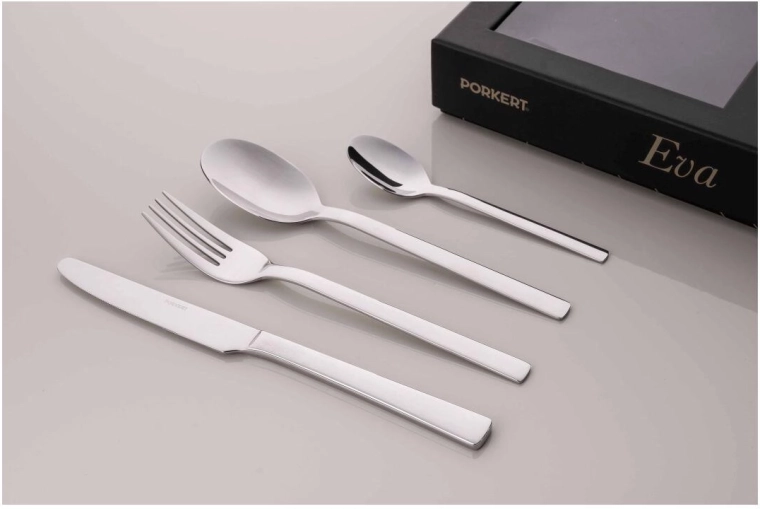 Reveniți la eleganța simplă cu setul de tacâmuri Eva. Formele atemporale, liniile curate și execuția precisă garantează că acest set va deveni o parte firească a servirii mesei. Oțelul inoxidabil de înaltă calitate asigură durabilitate și întreținere ușoară.