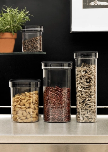 Datorită plasticului transparent, ai mereu vizibilitate asupra cantității și conținutului, iar forma pătrată, compactă și posibilitatea de stivuire te ajută să economisești spațiu pe rafturi. Materialele de calitate NAS, polipropilenă și silicon garantează rezistență și durată lungă de viață în utilizarea zilnică.