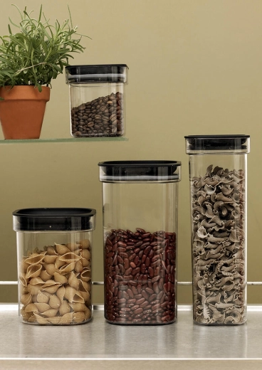 Cutia practică pentru bucătărie, cu un volum de 1,6 l, păstrează alimentele proaspete mai mult timp datorită capacului etanș cu garnitură din silicon. Pereții transparenți pentru o vedere rapidă, iar designul stivuibil economisește spațiu și este potrivit pentru depozitarea alimentelor vrac și uscate, precum făină, orez sau leguminoase.