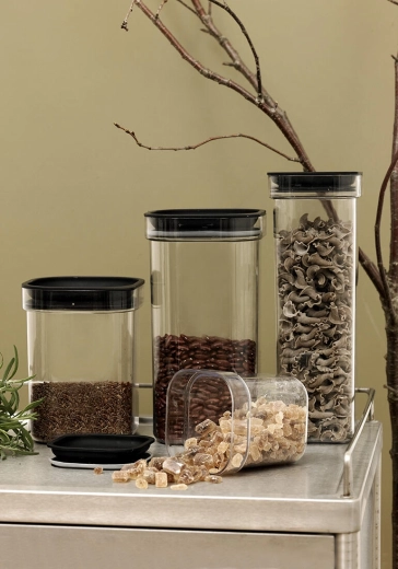 Cutie stilată și practică pentru alimente vrac, cu volum de 1,7 l, asigură datorită capacului etanș cu garnitură din silicon prospețime de lungă durată. Pereții transparenți permit verificarea imediată a conținutului și a cantității, în timp ce designul stivuibil economisește spațiu în cămară și în dulapurile de bucătărie.